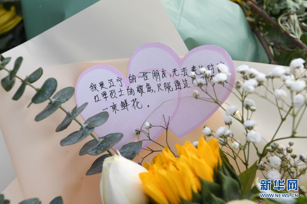 這是在甘肅省蘭州市烈士陵園拍攝的網(wǎng)友給陳紅軍烈士敬獻(xiàn)的花束留言(2月23日攝)。新華社記者 范培珅 攝