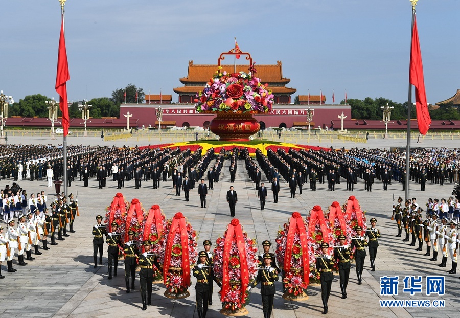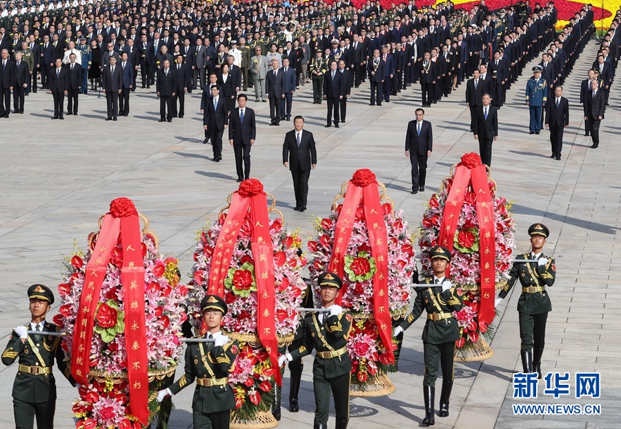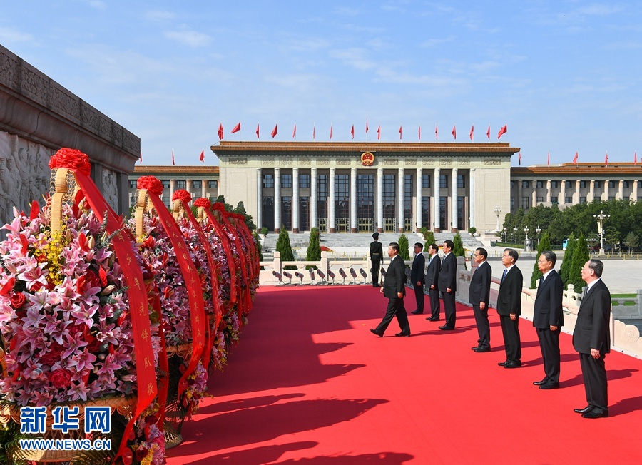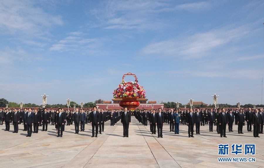9月30日上午,黨和國家領導人習近平、李克強、栗戰(zhàn)書、汪洋、王滬寧、趙樂際、韓正、王岐山等來到北京天安門廣場,出席烈士紀念日向人民英雄敬獻花籃儀式。 新華社記者 謝環(huán)馳 攝