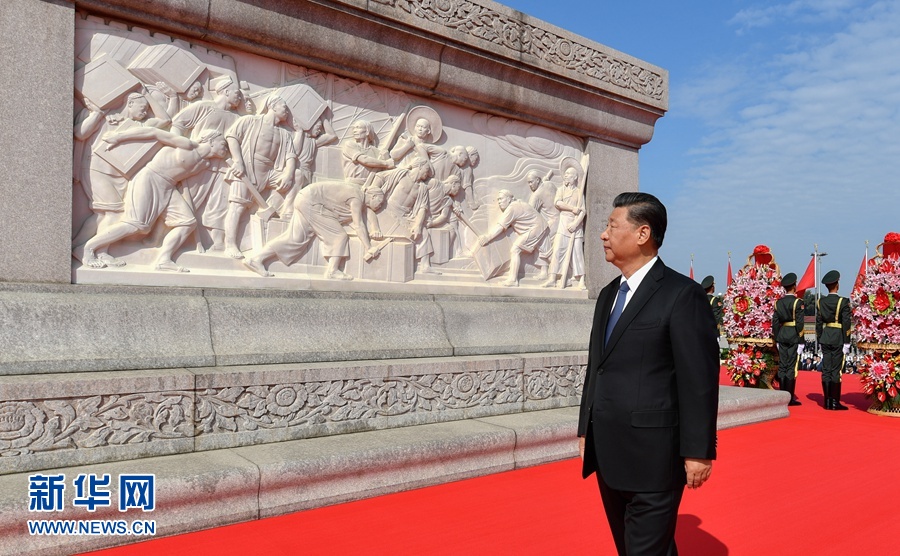 9月30日上午,黨和國家領導人習近平、李克強、栗戰(zhàn)書、汪洋、王滬寧、趙樂際、韓正、王岐山等來到北京天安門廣場,出席烈士紀念日向人民英雄敬獻花籃儀式。這是習近平瞻仰人民英雄紀念碑。 新華社記者 岳月偉 攝