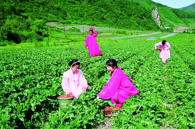在吉林省長白縣八道溝鎮(zhèn)十一道溝村草莓基地,村民采摘草莓。王嘉軍攝