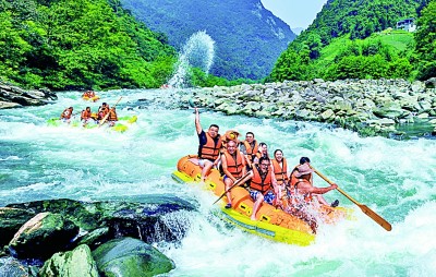 每逢夏季,湖南省石門縣壺瓶山鎮(zhèn)大峽谷迎來眾多漂流愛好者,景區(qū)充滿了歡笑。童成文攝/光明圖片