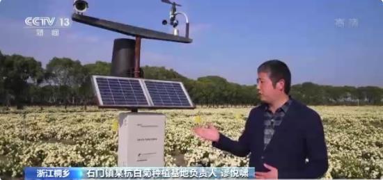 浙江桐鄉(xiāng)石門鎮(zhèn)某杭白菊種植基地負(fù)責(zé)人 謬悅嘯:這是一臺(tái)無線農(nóng)業(yè)氣象綜合監(jiān)測(cè)站,它就像我們的眼睛,以前我們都是走到土地里面查看我們的一個(gè)種植情況,現(xiàn)在它能夠給我們檢測(cè)到光照、土壤、水分等信息,傳送到大數(shù)據(jù)平臺(tái),來幫助我們預(yù)測(cè)氣象所帶來的一個(gè)病蟲害等問題,為我們杭白菊提質(zhì)增效、保駕護(hù)航。