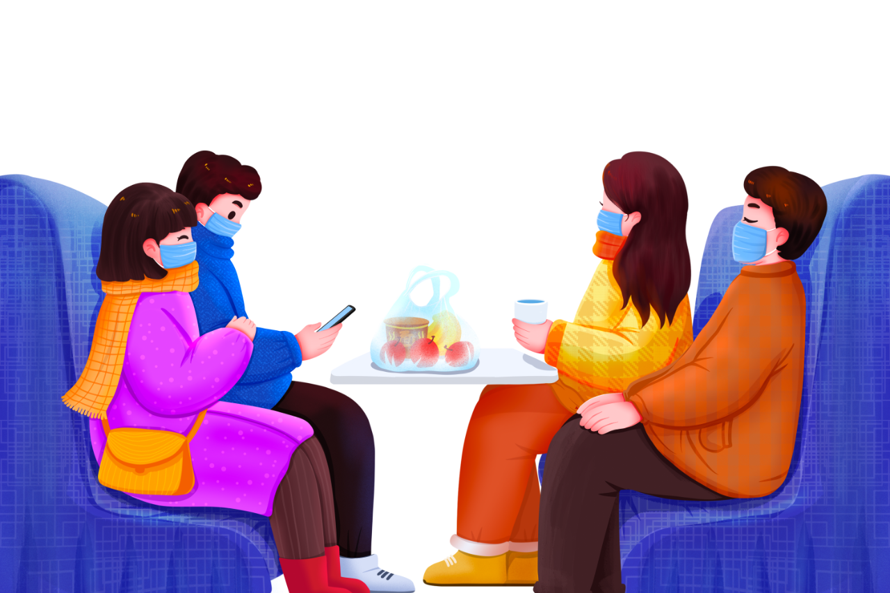在返鄉(xiāng)途中,要做好自我防護(hù),處于環(huán)境密閉、人員密集的場(chǎng)所時(shí),比如候機(jī)、候車時(shí),乘坐飛機(jī)、火車以及地鐵、公交等公共交通工具時(shí),要全程規(guī)范佩戴口罩。