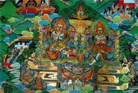 在后弘期初期的一個世紀中,衛(wèi)藏十人和他們的弟子在前后藏各地建立了許多增團和寺廟,成為西藏佛教的主流,遺留至今的康瑪縣的艾旺寺和江浦寺(薩瑪達寺)、夏魯堅貢寺、扎囊寺的宗教藝術,反映了漢地和河西隴右地區(qū)的藝術對西藏的影響,成為西藏佛教藝術中的精品。古格王朝還在1042年迎請印度高僧阿底峽(孟加拉國人)入藏傳法。1045年阿底峽又被前藏各地區(qū)的佛教人士的代表仲敦巴(100—1064)迎請到前藏地區(qū)傳送,1054年阿底峽在聶塘地方去世后,由仲敦巴統(tǒng)領眾弟子,在1056年在拉薩北面興建了熱振寺,由此逐漸發(fā)展出噶當派。在這個時期有一個修習佛法的在家僧人素爾波且(100—1062)建立鄔巴隆寺,整理吐蕃王朝時代翻譯的經典,以此為中心發(fā)展出寧瑪派。1073年款氏家族的官卻杰波建薩迦守,發(fā)展出薩迦派。山南洛扎縣的瑪爾巴譯師曾多次到印度學習佛法和梵文,他的一個弟子米拉日巴以修行和傳法著名。米拉日巴的弟子塔波拉杰1121年建塔波寺,同年穹波南交建香巴寺,由此發(fā)展出塔波噶舉和香巴噶舉派。塔波噶舉中塔波拉杰的弟子都松欽巴1147年建昌都噶瑪寺,1187年建楚布寺,發(fā)展出噶瑪噶舉派;帕木竹巴1185年建丹薩替寺,發(fā)展出帕竹噶舉派;達瑪旺秋1160年建拔絨寺,發(fā)展出拔絨噶舉派;尚蔡巴1175年建蔡巴寺,發(fā)展出蔡巴噶舉派。這四個派別被稱為塔波噶舉的四大支。帕竹噶舉派中,帕木竹巴的弟子止貢巴仁欽貝1179年建上貢寺,發(fā)展出止貢噶舉派;達隆塘巴扎西貝1180年建達隆寺,由此發(fā)展出達隆噶舉派;林熱白瑪多吉(其弟子藏巴嘉熱1193年后建“主”寺和熱垅寺)傳出主巴噶舉派;格丹意希僧格(其弟子卻悶朗1206年建雅桑寺)傳出雅桑噶舉派;杰擦和衰丹兄弟建綽浦寺,發(fā)展出綽浦噶舉派;楚臣僧格1181年建修賽寺,發(fā)展出修賽噶舉派;意希孜巴建葉巴寺,發(fā)展出葉巴噶舉派;喜饒僧格傳出瑪倉噶舉派。這八個派別被稱為塔波噶舉的八小支。實際上各地方勢力和佛教寺院相結合,因此形成不同的教派,這是前弘期所沒有的。2、一些寺院擁有土地屬民,古格王朝把幾個谿卡送給仁欽桑布,這是有關寺屬莊園的最早的記載。薩迦派家族的莊園屬民和寺院結合在一起。這是政教會一的基礎。3、從吐蕃王朝時佛教強調對佛祖的崇拜演變?yōu)閺娬{對本派祖師的崇拜,強調師傳,強調視師為佛,而仲敦巴、米拉日巴、薩欽貢噶寧波等西藏的祖師的出現,使佛教進一步本土化。