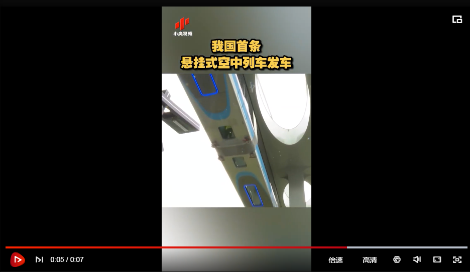 5月11日,湖北武漢,我國首條懸掛式空中列車試乘發(fā)車,它懸掛在單型軌道下方,有無人駕駛功能,最高運(yùn)行時(shí)速60公里,預(yù)計(jì)今年內(nèi)開通運(yùn)營。