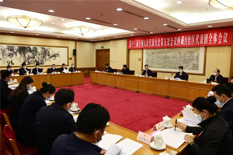 圖為3月3日下午,十三屆全國人大五次會(huì)議西藏自治區(qū)代表團(tuán)召開第一次全體會(huì)議。旦增西旦 攝