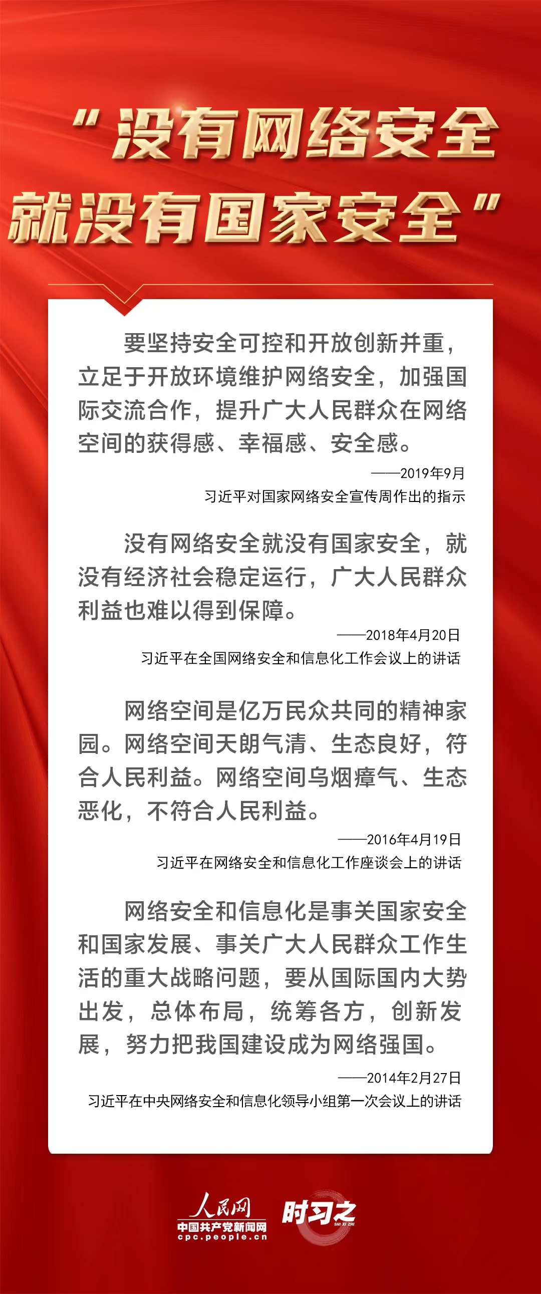 沒有網(wǎng)絡安全就沒有國家安全。今年是《中華人民共和國網(wǎng)絡安全法》施行五周年。一直以來,習近平總書記高度重視網(wǎng)絡安全和信息化工作,敏銳把握信息時代“時”與“勢”,多次在不同場合就網(wǎng)絡安全發(fā)表一系列重要論述,為維護國家網(wǎng)絡安全,筑牢國家網(wǎng)絡安全屏障奠定基石。