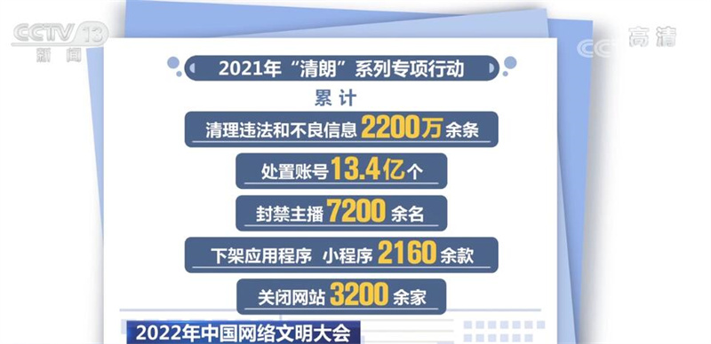 中國網(wǎng)絡文明大會|2021年“清朗”系列專項行動處置賬號13.4億個