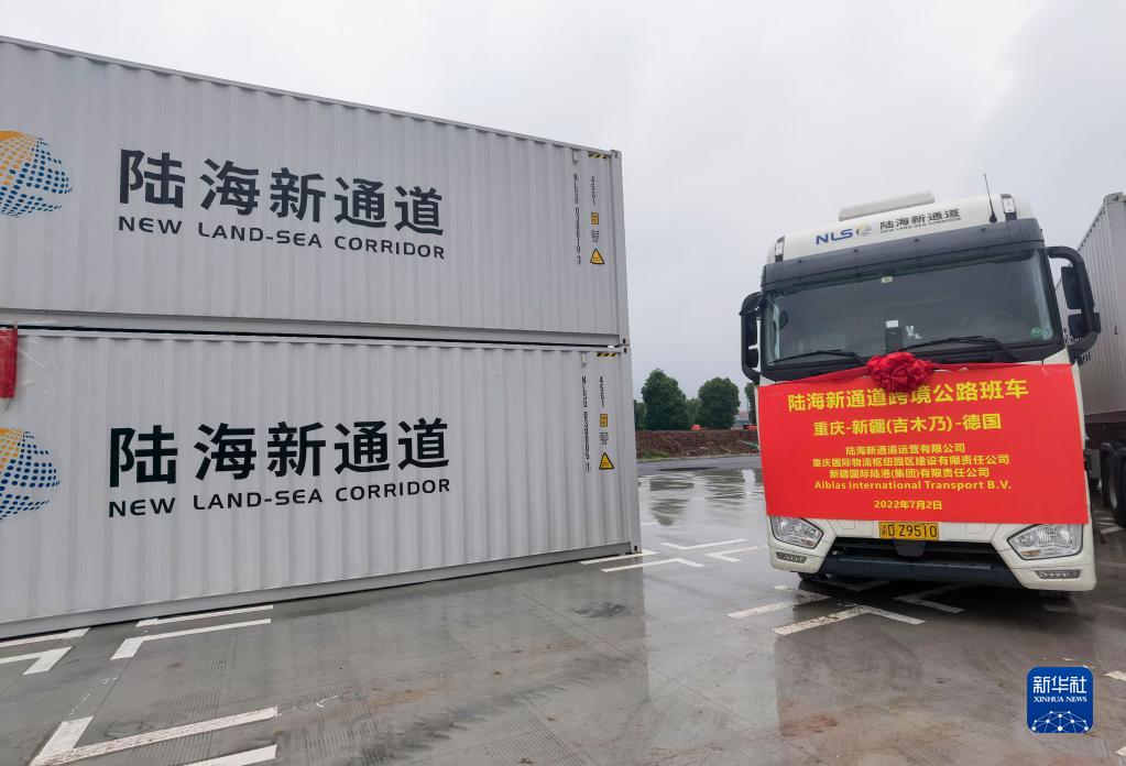 這是陸海新通道跨境公路班車(2022年7月2日攝)。新華社發(fā)(張云龍 攝)