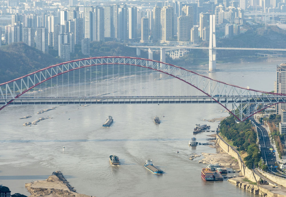 走進(jìn)長江上游最大港口——重慶果園港,映入眼簾的是一派繁忙景象:一艘艘貨輪??吭诖a頭,一座座橙色場橋穿梭在堆場之間,精確地將集裝箱“抓”到貨輪上……