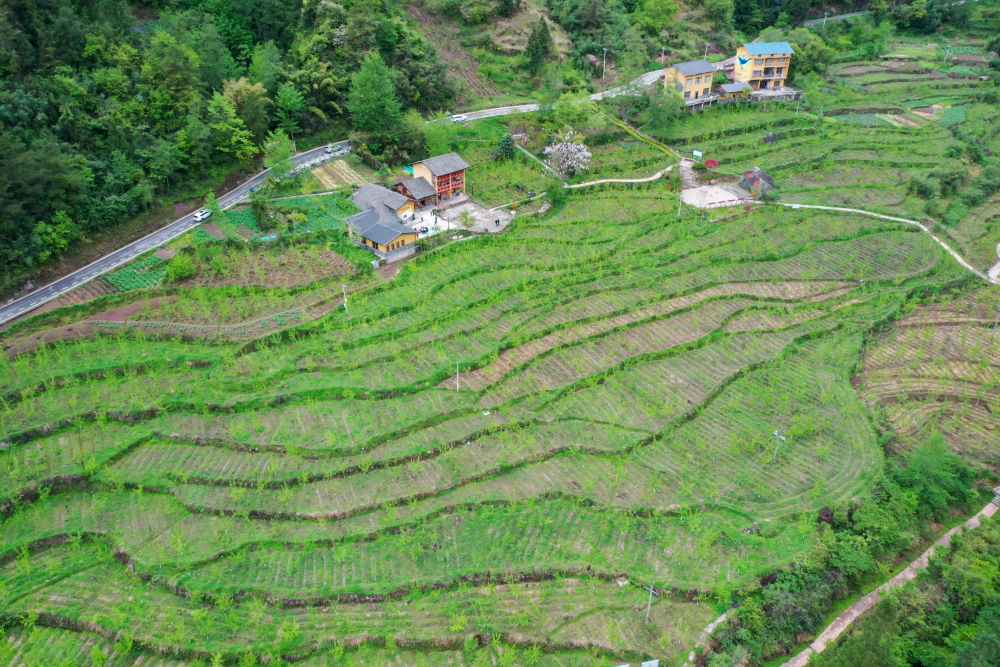 這是重慶石柱土家族自治縣中益鄉(xiāng)華溪村黃精種植基地(2022年4月14日攝,無人機(jī)照片)。新華社記者 唐奕 攝