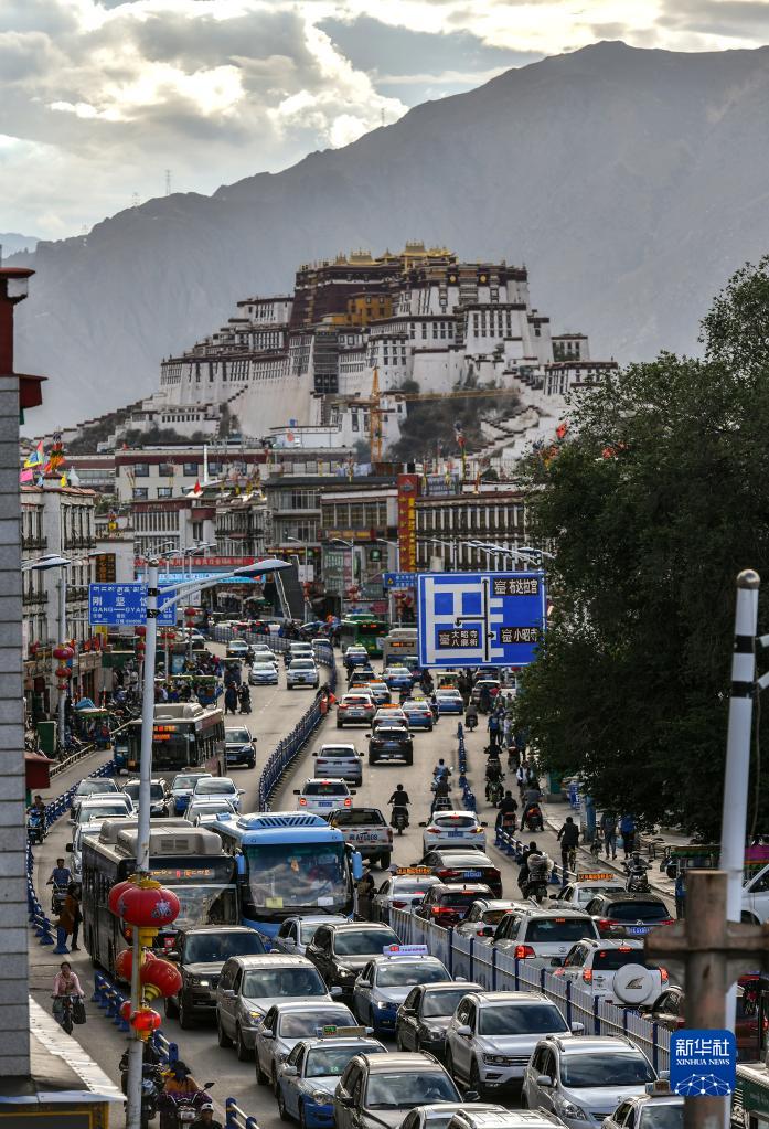 拉薩市北京路上車(chē)流密集(2019年7月4日攝)。新華社記者 李鑫 攝