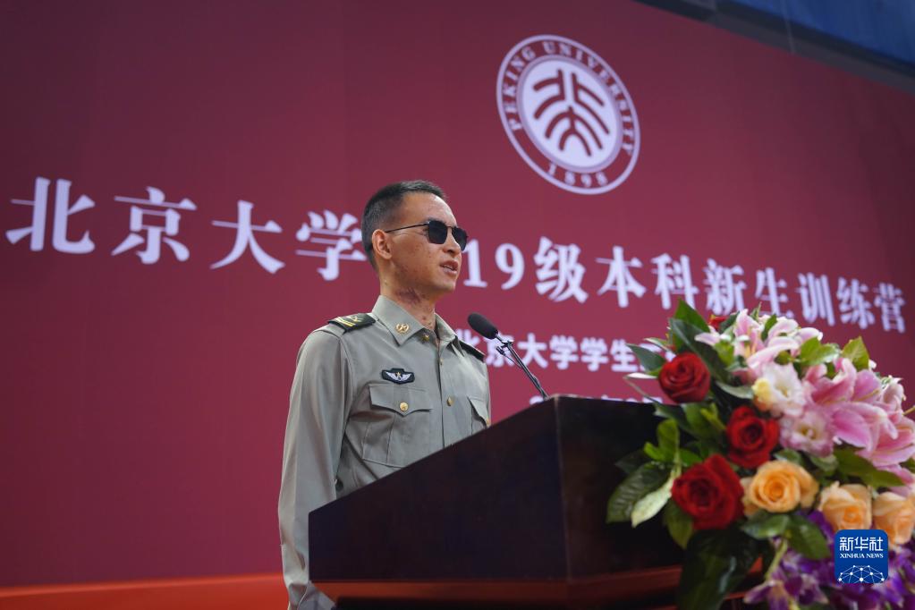 “排雷英雄戰(zhàn)士”杜富國(guó)在北京大學(xué)作先進(jìn)事跡報(bào)告(2019年9月3日攝)。新華社記者 李清華 攝