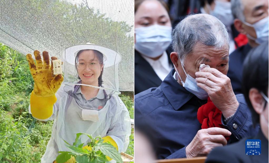 這張拼版照片的左圖為黃文秀生前工作照(資料照片);右圖為2021年2月25日,黃文秀的父親黃忠杰在全國(guó)脫貧攻堅(jiān)總結(jié)表彰大會(huì)上(新華社記者劉彬攝)。新華社發(fā)