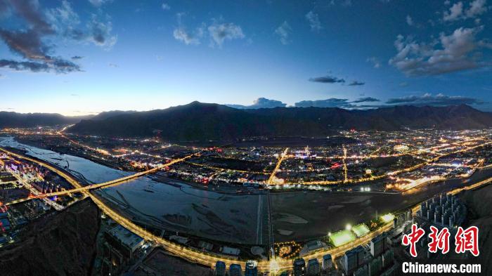 資料圖為夜幕降臨、拉薩城區(qū)華燈初上?!〗w波 攝