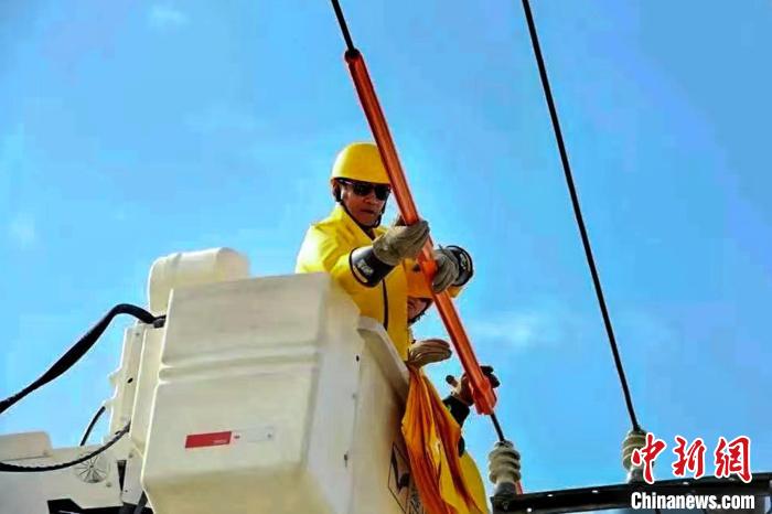 圖為扎西尼瑪進行電力搶修作業(yè)。 受訪者供圖