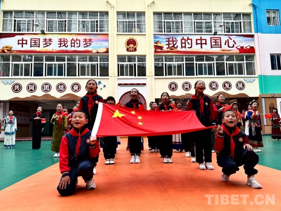 正在大課間休息的同學(xué)們,在老師的帶領(lǐng)下紛紛涌向操場,伴隨著歡快的舞曲跳起了藏族鍋莊;合唱團(tuán)的孩子們唱起了該校自主編創(chuàng)的社會主義核心價值觀24字童謠,孩子們挺拔的身姿和鏗鏘的歌聲,盡顯文化自信和民族自豪感。