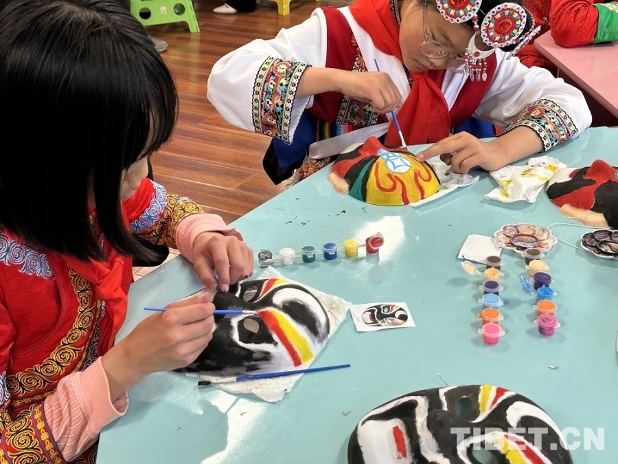 圖為學(xué)生們體驗京劇臉譜繪畫