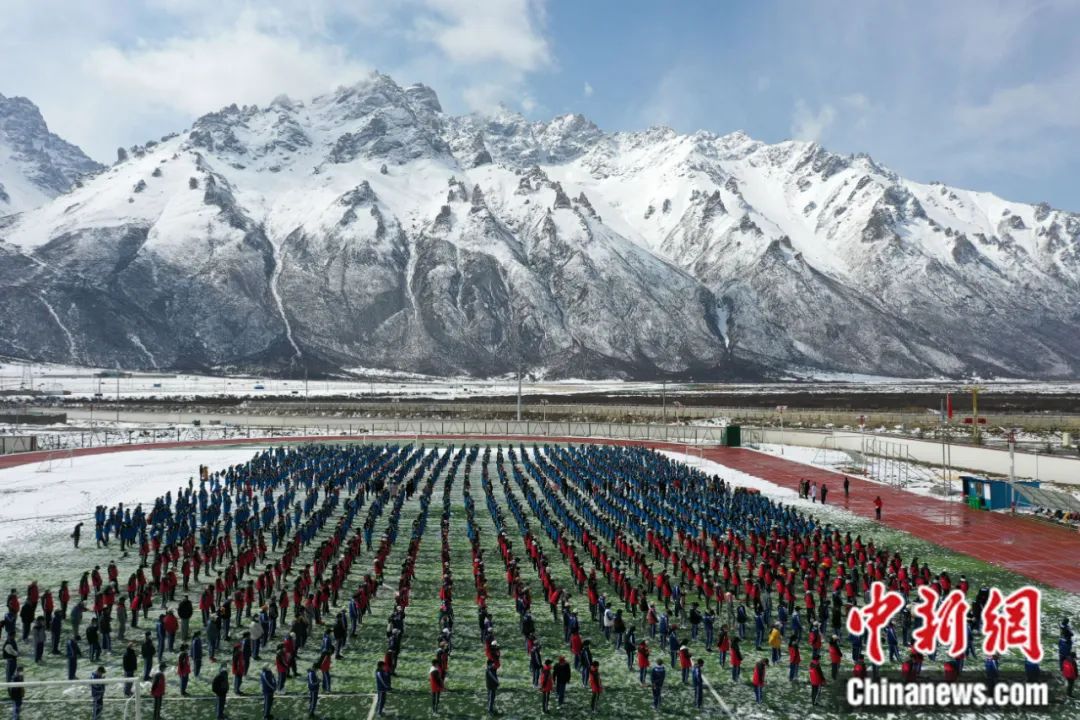西藏嘉黎縣中學學生在操場做操。貢嘎來松 攝