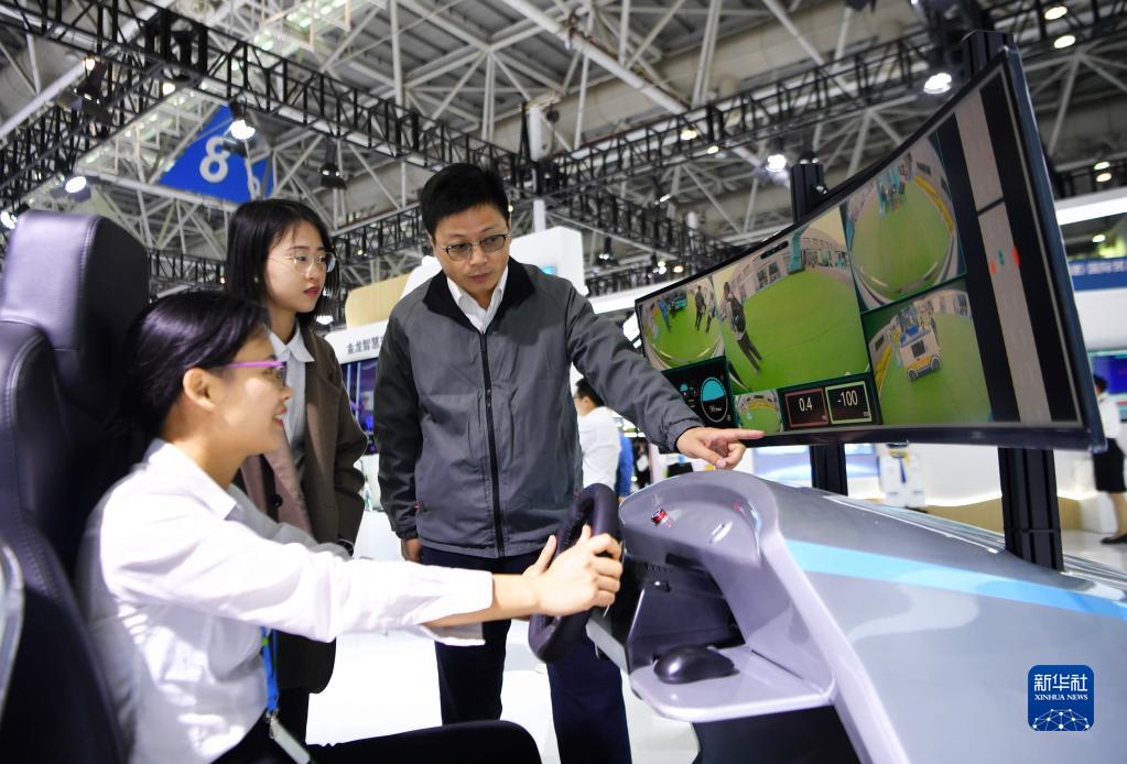 4月26日,在第六屆數(shù)字中國建設成果展覽會上,觀眾體驗金龍5G遠程駕駛。新華社記者 魏培全 攝