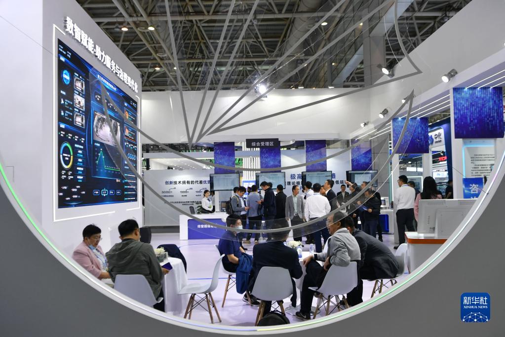 4月26日在第六屆數(shù)字中國建設成果展覽會上拍攝的數(shù)智賦能·助力服務與治理現(xiàn)代化展區(qū)一景。新華社記者 魏培全 攝