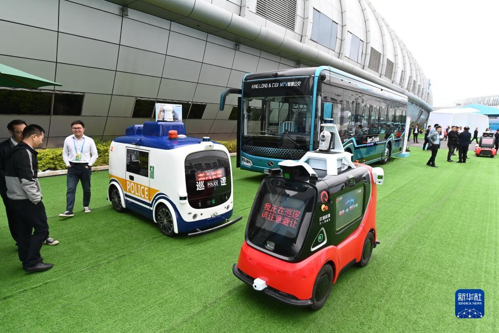 4月26日在第六屆數(shù)字中國建設成果展覽會上拍攝的多種智慧車輛。新華社記者 林善傳 攝