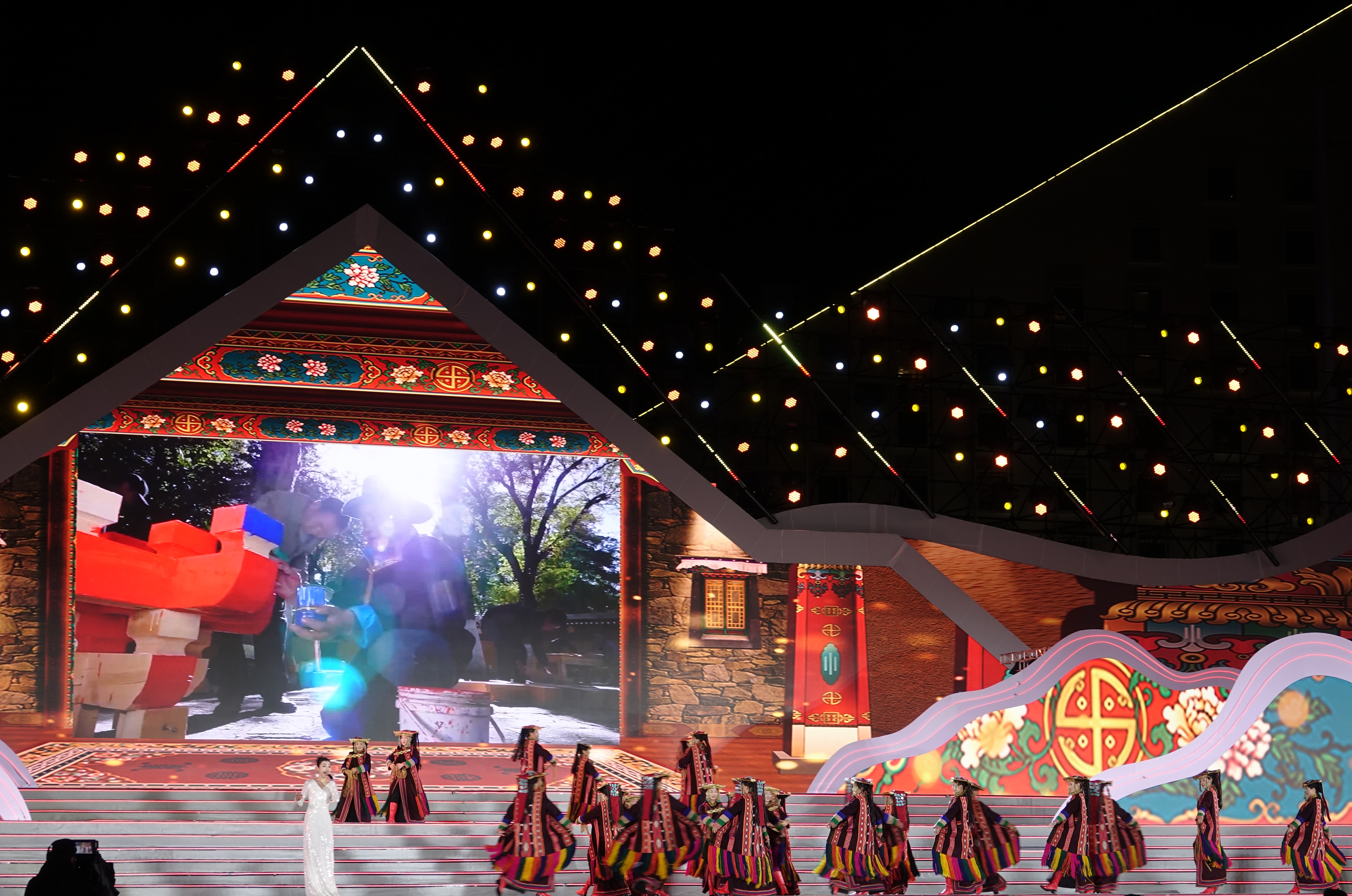 文藝演出《擁抱新西藏》在經(jīng)久不息的歡呼聲中開場。京劇《四郎探母》、藏戲《扎西雪巴》、粵劇《文成公主》選段,三種戲曲藝術(shù)跨界融合表演,充分展現(xiàn)了中華優(yōu)秀傳統(tǒng)文化的魅力,在文化的交融中飽含各族兒女對祖國母親的熱愛和眷戀之情。情景歌舞《我來了,西藏》《金色家園》《呀啦嗦》《幸福踏歌》等精彩節(jié)目,生動展現(xiàn)了新時代十年西藏各項(xiàng)事業(yè)取得的全方位進(jìn)步、歷史性成就;《牽夢西藏》《心手相連》《云端上的納木措》《藍(lán)天下的祝?!贰稅傄麸w揚(yáng)》《飲酒歌》,充分展示了西藏自然風(fēng)光之美、歷史人文之美、民族風(fēng)情之美、包容開放之美,再次向世界發(fā)出真誠邀約,歡迎四面八方的朋友親近西藏、感悟西藏。