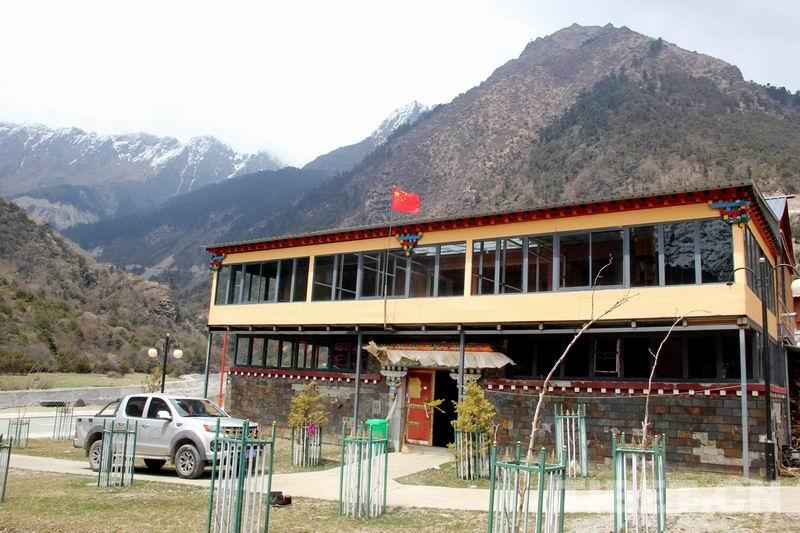 圖為次卓瑪在玉麥村的新家,五星紅旗在漂亮的二層藏式小樓屋頂迎風(fēng)飄揚,門前停著新買的皮卡車 攝影:劉莉