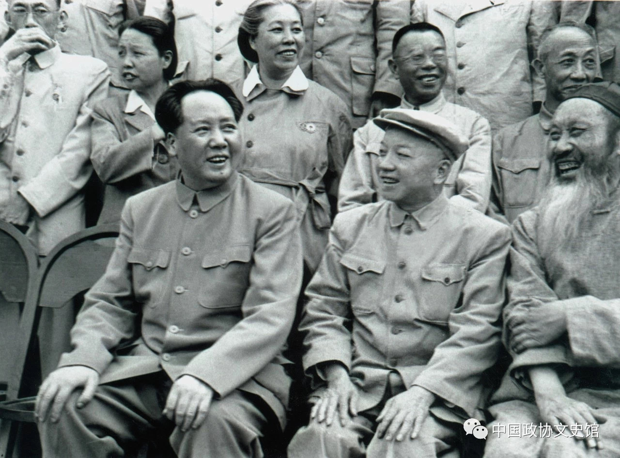 1950年6月23日,毛主席與李濟(jì)深(中)、張瀾(右)等出席會(huì)議的委員們合影。