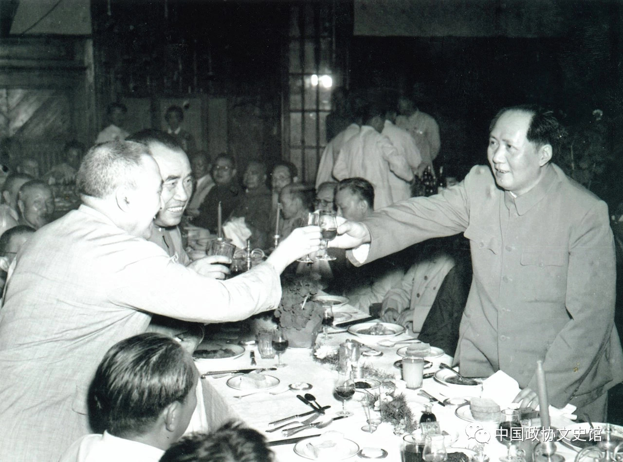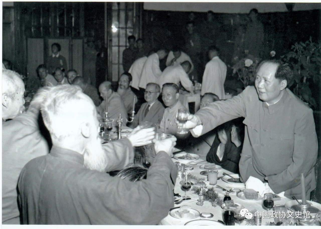 1950年6月23日,毛主席與民主黨派領(lǐng)導(dǎo)人干杯。