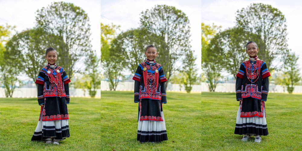 拼版照片:7月23日在成都大運(yùn)會(huì)開(kāi)幕式彩排之前拍攝的馬杰英(左)、吉合拉作和俄地惹漢(右)。新華社記者沈伯韓 攝