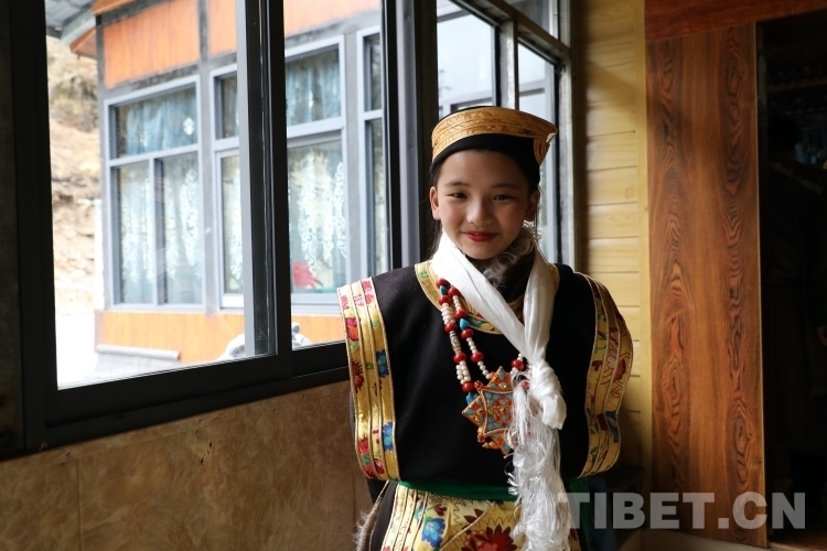 圖為身著藏裝的女孩曲尼白瑪 攝影:呂靜
