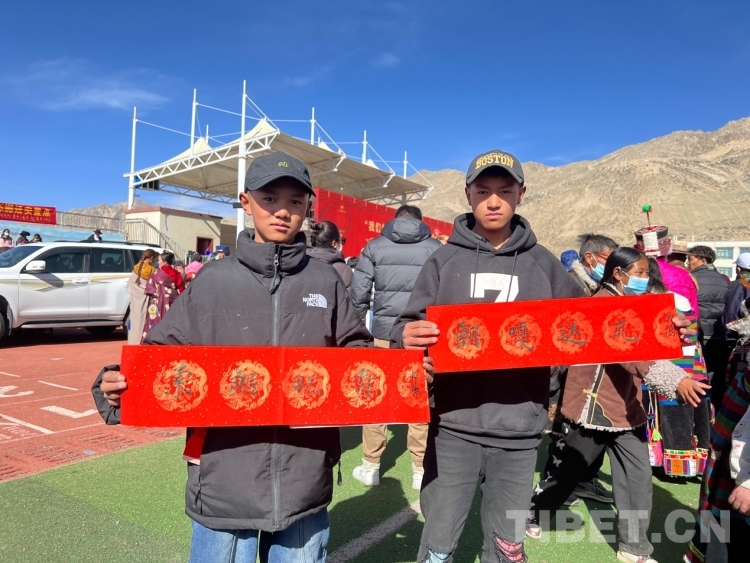 圖為群眾拿到寫(xiě)有“心想事成”字樣的書(shū)法作品 攝影:德吉卓瑪