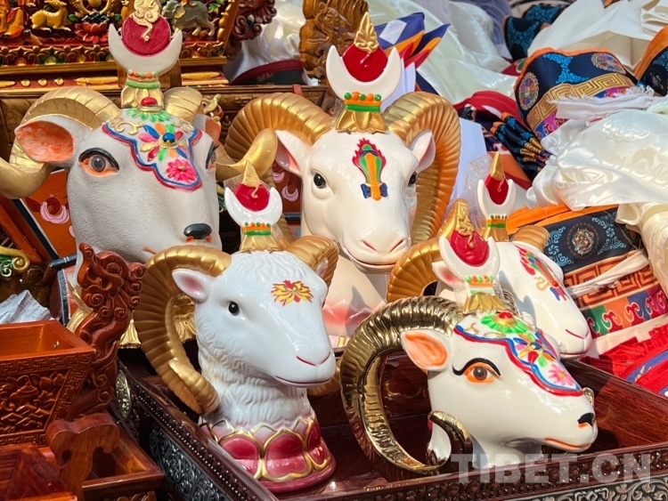 圖為年貨市場里的“隆果”(吉祥羊頭) 攝影:次旦拉姆