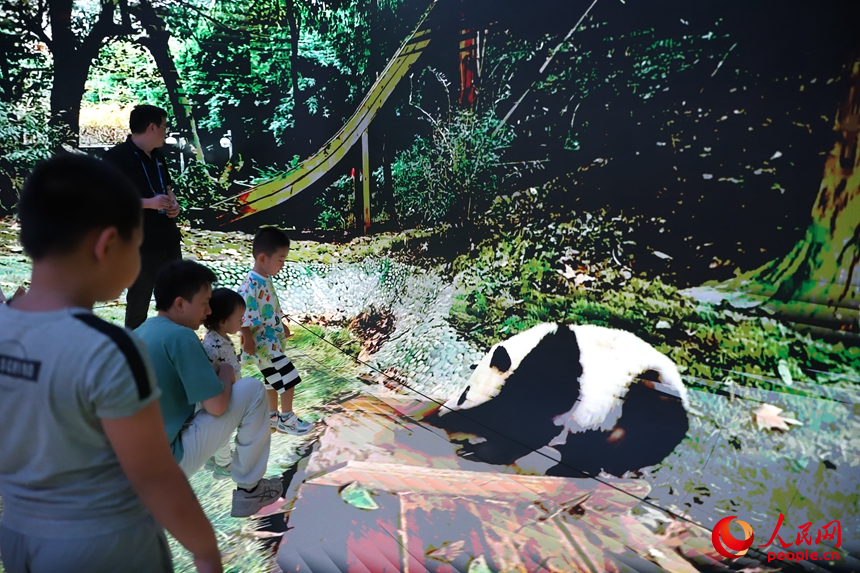 四川展區(qū),XR沉浸式體驗(yàn)空間讓觀(guān)眾“走進(jìn)”大熊貓基地。人民網(wǎng) 劉森君攝