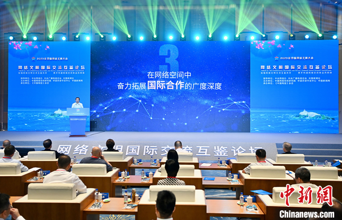 7月18日,2023年中國網(wǎng)絡文明大會網(wǎng)絡文明國際交流互鑒論壇在廈門舉辦。圖為論壇現(xiàn)場。中新社記者 王東明 攝