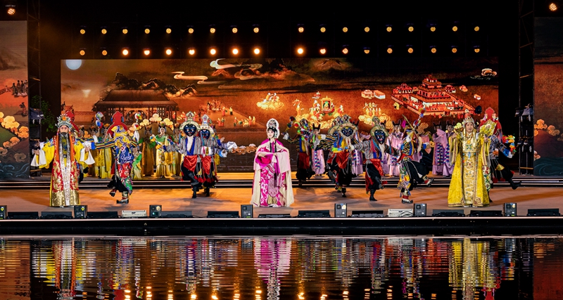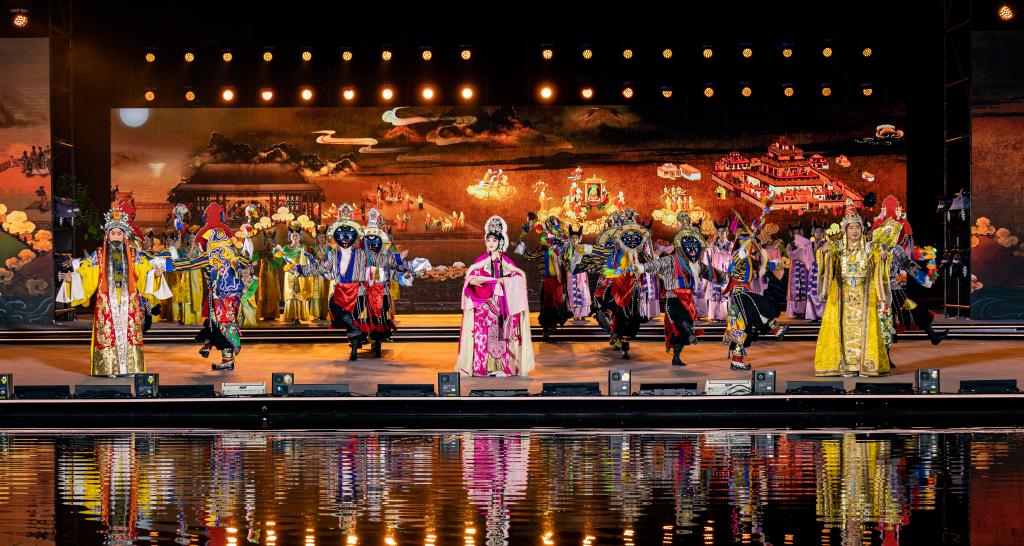 8月16日,在2023拉薩雪頓節(jié)開幕式文藝演出上,京劇藏戲《文成公主》上演。新華社記者 丁增尼達(dá) 攝