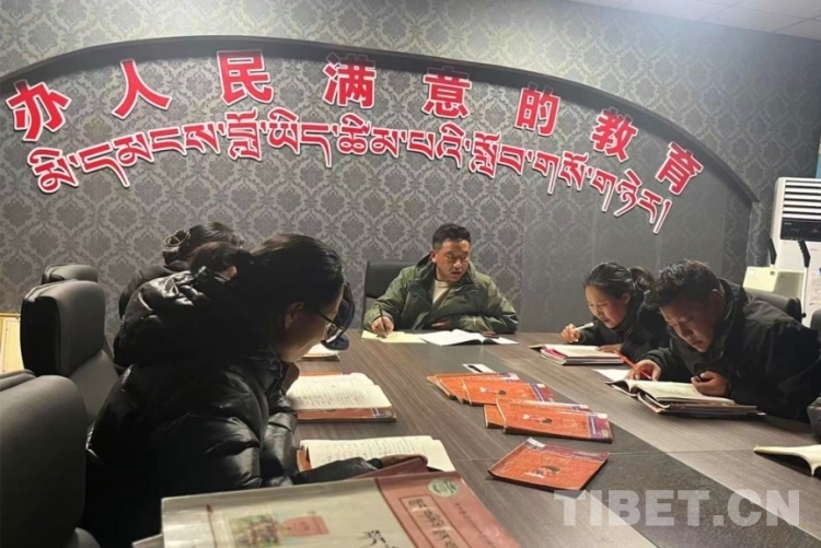 圖為達(dá)瓦(中)跟老師們開教研會(huì)議