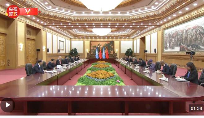 10月18日晚,國家主席習(xí)近平在人民大會堂會見來華出席第三屆“一帶一路”國際合作高峰論壇的聯(lián)合國秘書長古特雷斯?!?