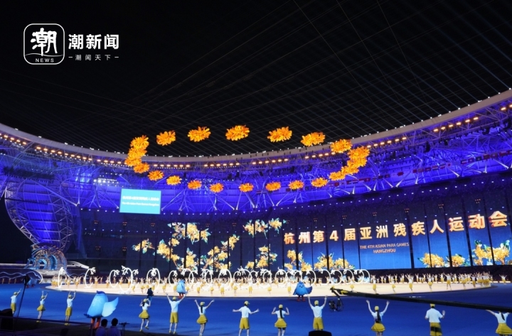 10月22日晚,杭州第4屆亞殘運會開幕式節(jié)目《心相約》表演時,原本熱烈的現(xiàn)場安靜了下來,燈光打在場內一側。