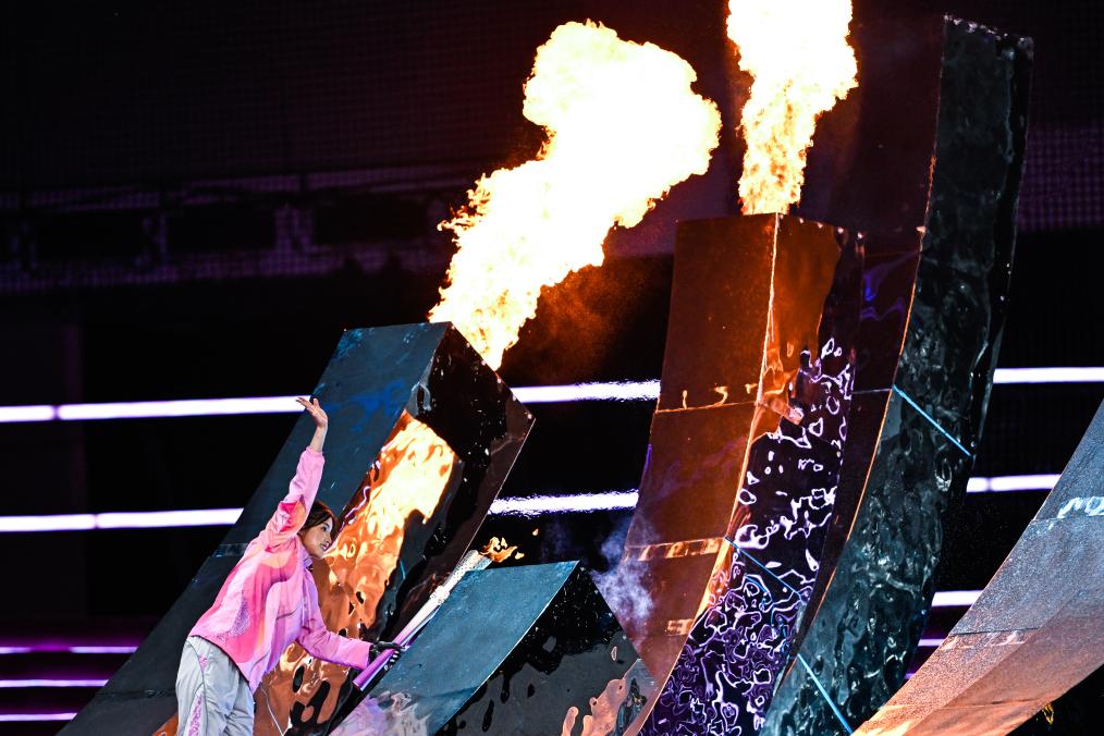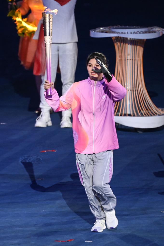 10月22日,最后一棒火炬手徐佳玲在開幕式上點(diǎn)燃主火炬。新華社記者伍志尊攝