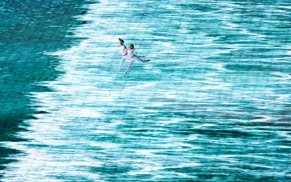 這是9月23日拍攝的杭州亞運會開幕式3D雙威亞。新華社記者 胡虎虎 攝