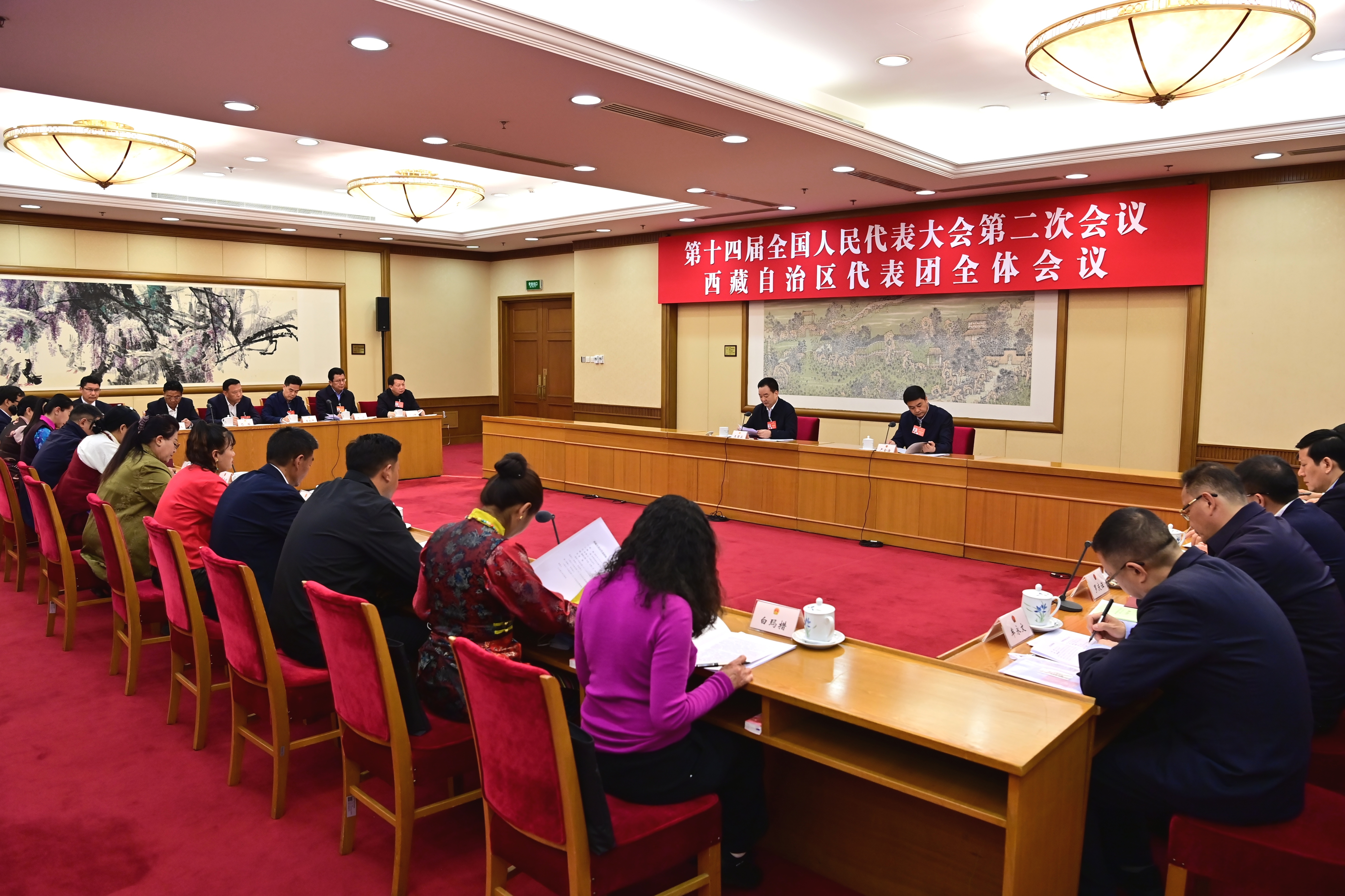 3月6日,出席十四屆全國人大二次會議的西藏代表團(tuán)在北京人民大會堂西藏廳舉行開放團(tuán)組會議,審議政府工作報告并回答記者提問。