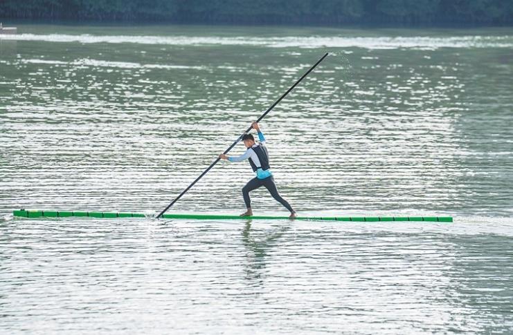 畬族青年田洪金接觸獨(dú)竹漂已有11年,曾多次參加全國性比賽。談起如何修煉這一“水上漂”絕技,他說,獨(dú)竹漂非??简炄梭w的平衡和協(xié)調(diào)能力,剛開始學(xué)習(xí)獨(dú)竹漂時,一天落水幾十次都是常事,經(jīng)過多年練習(xí),他已能熟練完成跳躍上漂、撐桿跳上漂等技巧。