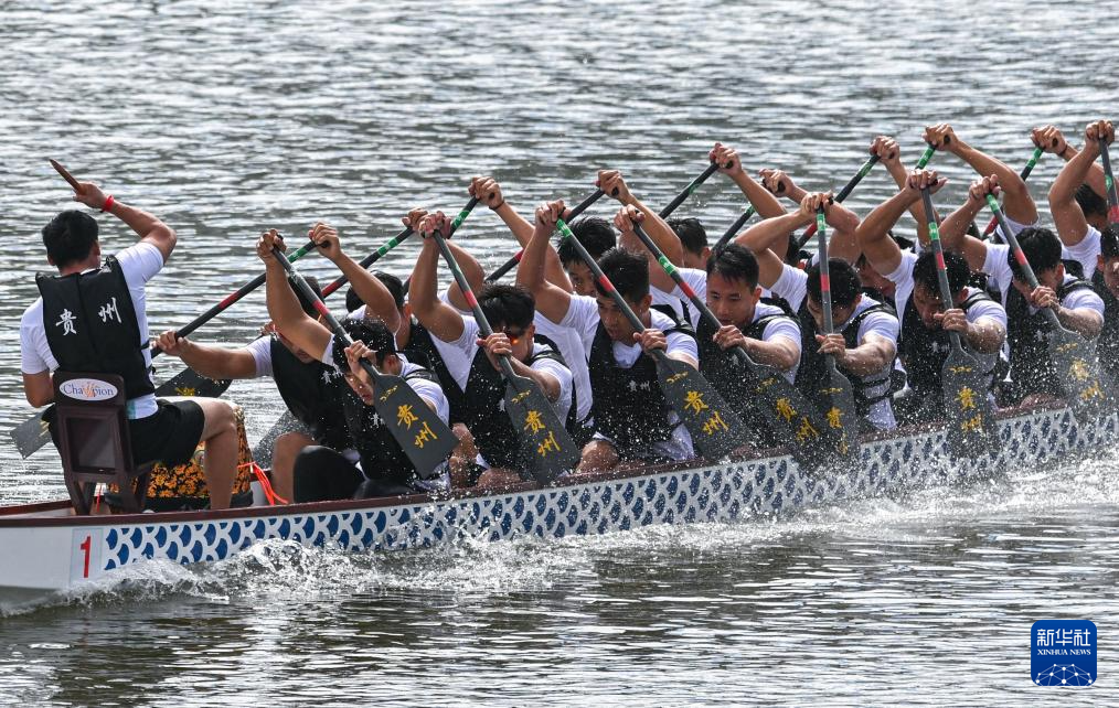 當日,在第十二屆全國少數(shù)民族傳統(tǒng)體育運動會男子組(標準龍舟)1000米直道賽中,貴州隊獲得一等獎。