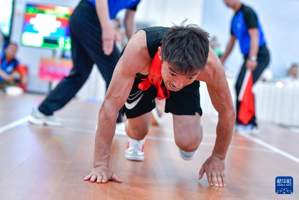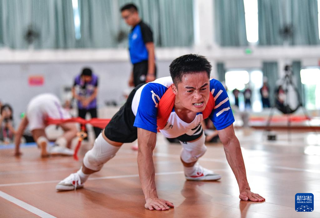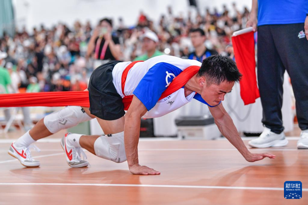 當日,第十二屆全國少數(shù)民族傳統(tǒng)體育運動會押加55公斤級四分之一決賽在海南三亞舉行。