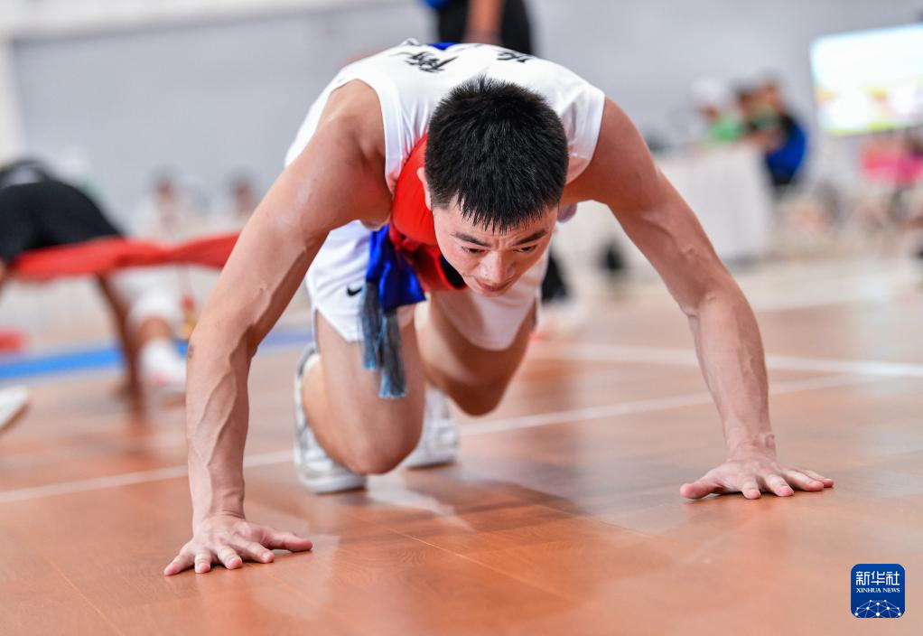 11月25日,新疆隊選手額熱斯別克·居馬德里在比賽中。最終,額熱斯別克·居馬德里戰(zhàn)勝內(nèi)蒙古隊選手烏吉勒,晉級半決賽。