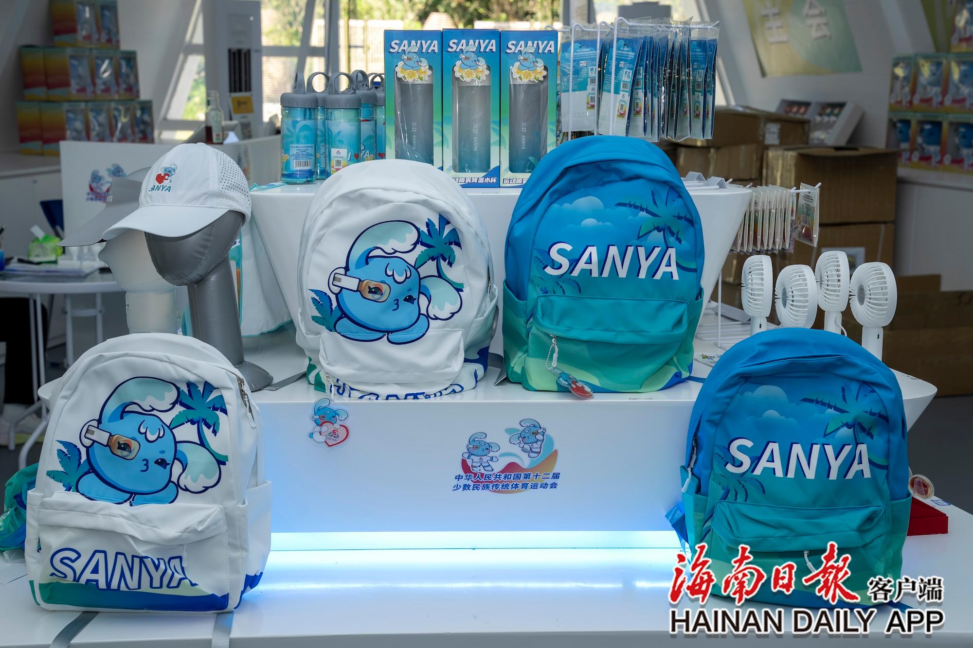 11月8日,三亞灣紅樹林度假世界的運動會官方特許商品展示廳內(nèi)的背包。海南日報全媒體記者 李天平 攝