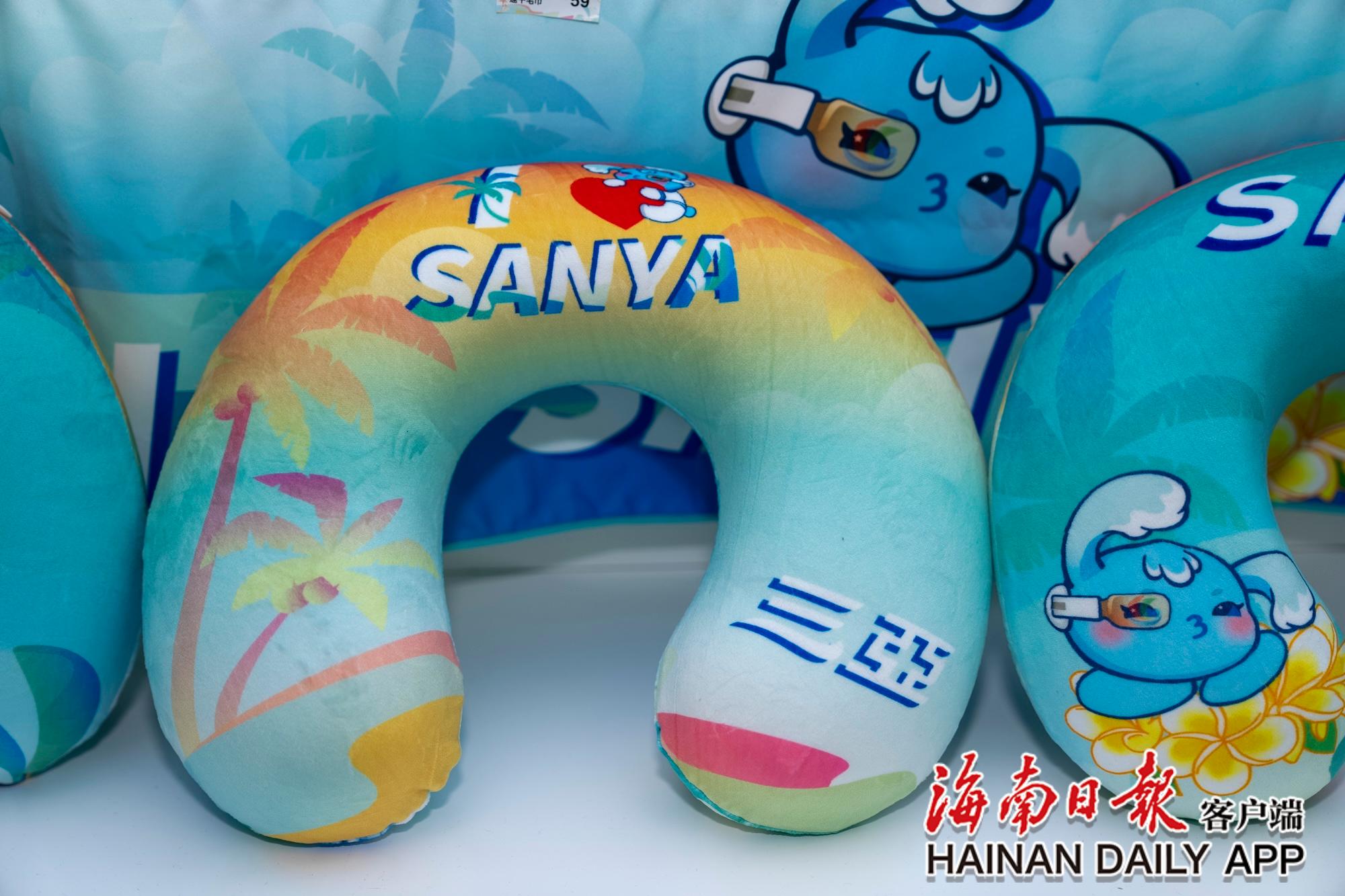 11月8日,三亞灣紅樹林度假世界的運動會官方特許商品展示廳內(nèi)的頸枕。海南日報全媒體記者 李天平 攝