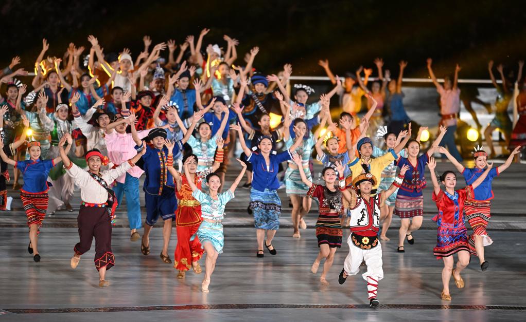 第十二屆全國少數(shù)民族傳統(tǒng)體育運動會(以下簡稱“運動會”)民族大聯(lián)歡活動26日在三亞舉行,在這個閃亮舞臺上,各族同胞展示了多姿多彩的民族文化,為三亞冬季旅游添彩。